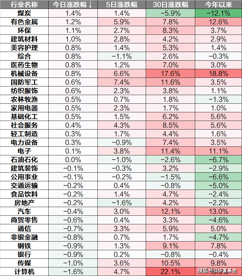 概念股震动反弹,华为HMS、AI智能体、云计较、DeepSeek概念等板块跌幅居前。全市场超3200只个股上涨,表示一般。行业上看,今日申万一级行业涨跌互现,煤炭、有色金属、环保行业领涨,计较机、传媒、银行行业领跌。