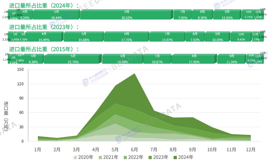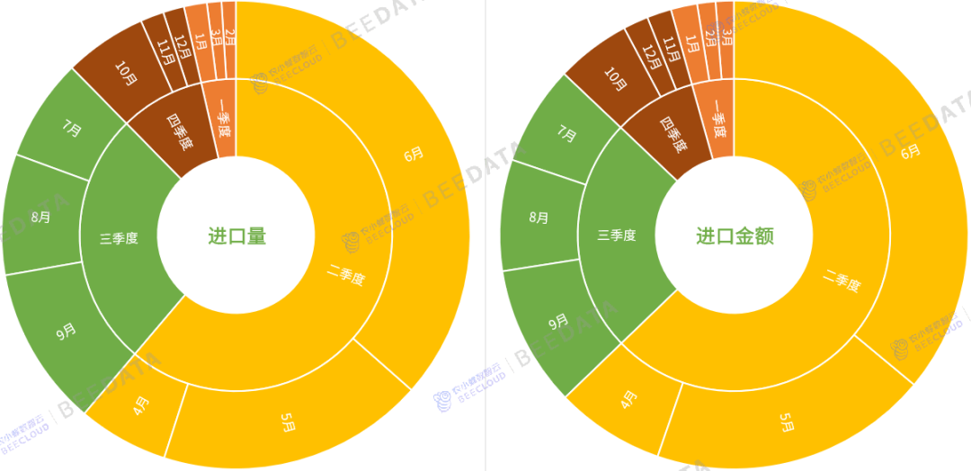 此中,出口的榴莲产物次要销往俄罗斯,广东出口的榴莲次要销往澳门地域,新疆出口的榴莲销往哈萨克斯坦及俄罗斯。2024年,全年榴莲进口次要集中正在第二季度;此中,6月份榴莲进口量及进口金额正在全年榴莲进口量及进口金额中所占的比沉别离为36。52%、是全国榴莲进口规模最大的月份。