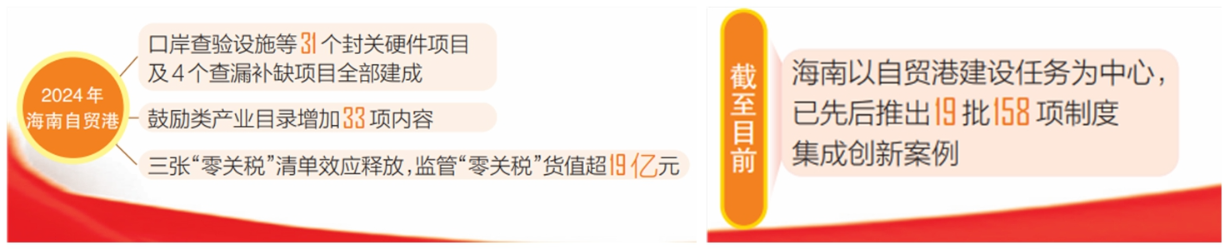 要结实推进沉点范畴。着眼全方位实施商业港政策轨制系统,统筹放置好进度和节拍。聚焦实现商业、投资、跨境资金流动、人员进出、运输交往便当和数据平安有序流动,对标国际高程度经贸法则,鼎力推进轨制型,营制市场化、化、国际化一流营商。做实做优各类平台,加强同共建“一带一”国度和地域商业园区的交换合做和功能对接。加强同粤港澳大湾区联动成长,深化同长江经济带、长三角等区域的合做。加紧推进海南商业港焦点政策落地,细心做好各项预备工做,确保封关运做平稳有序。往北,海南自贸港封关运做沉点项目海口南港“二线港口”普铁搭客检验设备扶植工程落成,新建的坐房楼顶挂上新门头,“南港坐”红色招牌十分夺目。海南国际船舶登记办理局成功完成海南中豪海洋航天科技无限公司所属船舶“风海达”汽船舶登记手续。至此,“中国洋浦港”籍登记正在册船舶数量冲破52艘。2025年,是海南自贸港封关运做、扩大之年。以习总正在听取海南省委和省工做报告请示时的主要讲话为,今日的海南,结实推进沉点范畴,加紧推进自贸港焦点政策落地,细心做好各项预备工做,正全力确保封关运做平稳有序、满有把握、首和必胜。一月初,航拍海口新海港和南港“二线港口”(货运)集中检验场合扶植项目。海南日报全记者 张茂 摄1月22日,跟着报关单缴税放行,海南京润珍珠科技股份无限公司出产的首批进口珍珠加工产物成功发往内地市场。这是海南自贸港加工增值内销免关税政策下首票珍珠加工增值营业,货值8。36万元,企业享受减免关税约1。76万元。“政策盈利的,进一步加强了我们的成长决心。”该公司营业担任人说。“正在洋浦保税港区堆集先行先试经验根本上,我们逐渐扩大该项政策的使用场景和合用范畴,2024年进一步扩大到海南岛全岛。”省商务厅副厅长、旧事讲话人余翔引见,截至2月中旬,内销货值超70亿元。“零关税”进口药械政策落地一个月,博鳌超等病院累计开展44台利用免税进口耗材的手术,为患者节流近180万元就医成本;免签政策实现升级“三连跳”,2024年海南欢迎入境旅客量冲破100万人次从“先行先试”到“多点开花”,再到扩容扩围、滚动升级,近年来,海南鞭策一批自贸港环节焦点政策落地收效,以“零关税、低税率、简税制”和“五便当一平安有序流动”为从框架的自贸港政策轨制系统逐渐建立,政策盈利加快变为成长先机。“好比,海南要尽快鞭策海南自贸港免税消费业态优化升级,支撑海南分阶段打形成免税购物消费岛,加速建成国际旅逛消费核心。”全国政协委员、海南省成长控股无限公司总司理李国红暗示。2月28日,办事海南自贸港封关运做及西部陆海新通道扶植的一项环节工程洋浦区域国际集拆箱枢纽港扩建工程(一阶段)一期工程通过交工验收,标记着项目完成施工扶植,正式进入投产筹备阶段。梳理几个时间节点,会发觉该工程扶植“进度条”的刷新速度不成谓不快:2024年5月6日,该工程进入从船埠从体和疏浚施工;2024年10月21日,全面进入船埠从体布局施工;2025年1月2日,700米船埠从体布局全数落成按下项目扶植“快进键”,打牢封关硬根本。海口南港“二线港口”普铁搭客检验设备落成,三亚封关运做7个项目全数完工,海口海关聪慧监管营业手艺用房等4个封关运做沉点项目全面完工验收并启用锚定封关运做方针,封关运做预备取得环节进展。跑出对外“加快度”,培育封关软实力。推进办事业扩大分析试点,航空器、船舶临时出境复运进入海南自贸港免关税等30余项办法落地实施,海南自贸港多功能商业账户(EF账户)上线运转对标国际高尺度经贸法则,海南实行愈加积极自动的计谋。绷紧风险防控“平安弦”,扭住最环节变量。离岛免税“套代购”私运冲击管理由治本向治标改变,64个反私运分析法律坐强化实和运转海南压茬推进自贸港扶植严沉风险防控使命,全岛闭环的反私运防地持续建牢。一项一项有序落地,一件一件干好干成。以“三张清单”为抓手,现在,海南举全省之力推进封关运做“一号工程”,硬件项目全数完工,政策轨制系统逐渐健全,测试练习训练压茬推进,风险防控无力无效,正全力打好封关运做各项预备工做收官和。